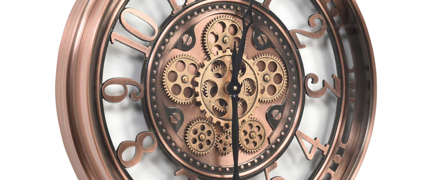 CLXEAST Moving Gear Wall Clock Modern Decor, Large Industrial Wall Clock Steampunk, Metal Big Arabic Numerals Rose Gold Wall Clock for Living Room Decor, Kitchen, Office, Bronze Copper (21 Inch)